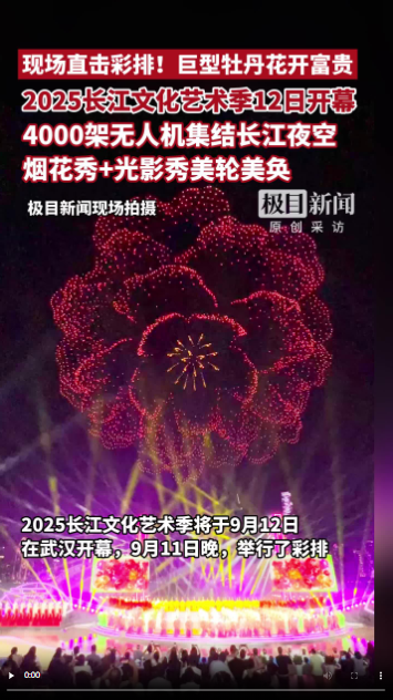 今晚将恢复,爆炸和爆炸。在长江桥和长江第二桥,8艘船和1,000架无人机之间的河上,将吸引三轮烟火,另外3,000架无人机将进行灯光和阴影表演,从而产生壮观的三维效果。直到一朵巨大的牡丹花在天空中升起,照亮长江夜空的天空,壮丽的两条河流,三个城镇和四个银行...
