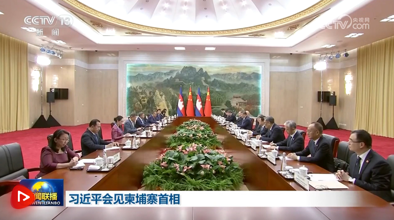 8月30日下午,习近平总统会见了柬埔寨总理洪·马奈(Hong Manai),后者到达中国参加了在天津欢迎酒店的2025年上海合作组织峰会。