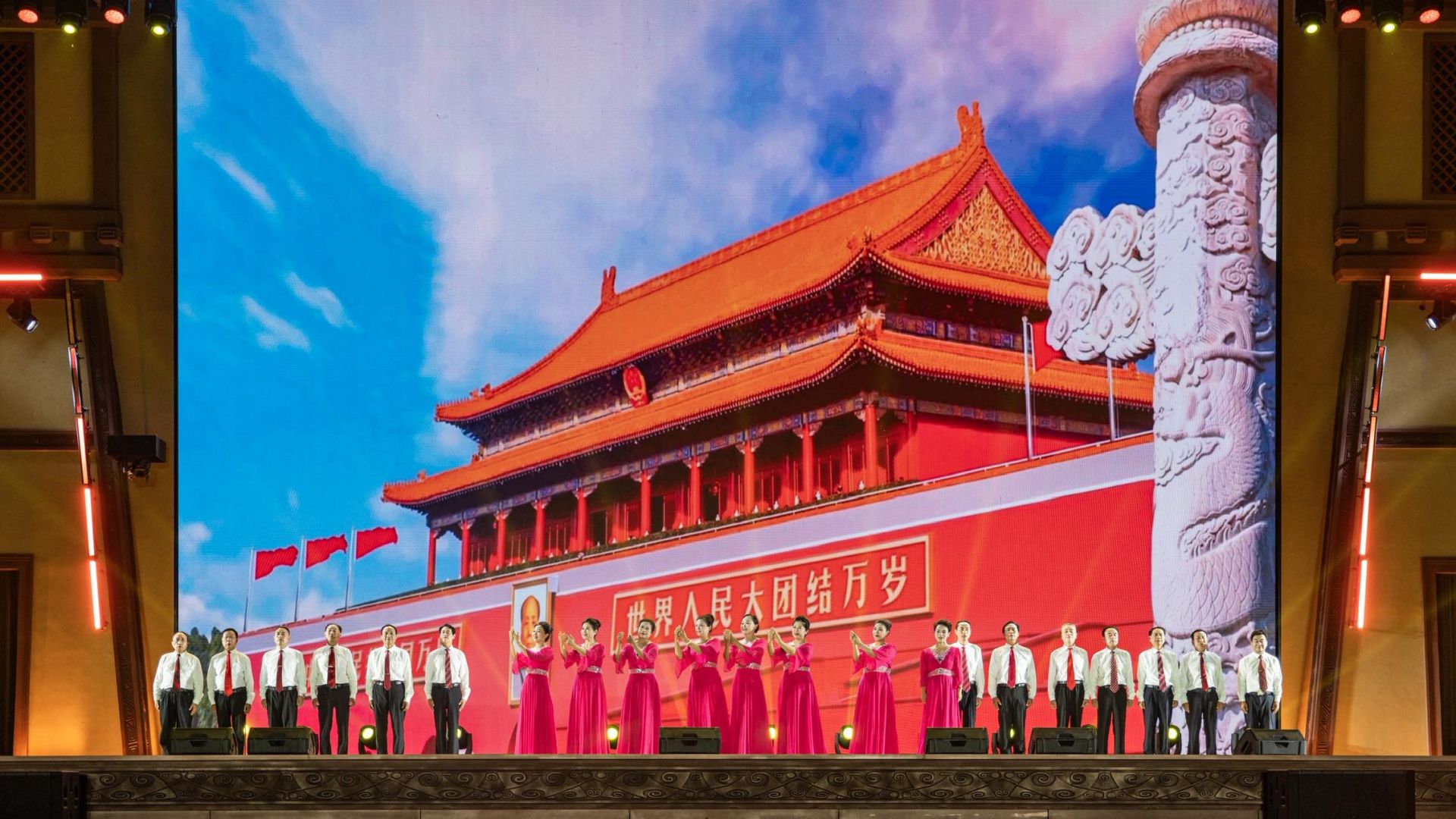 萨克斯管散发着“庆祝”和“经典红色歌曲”,而女子和女子的声音唱歌“我亲爱的tupipa”和“为派对演唱歌曲“,歌曲和舞蹈”,《红旗》,经典的红色歌曲Sing“ Liuyang River,军事和平民制作,进入新时代”,以及“小杨”的“小杨”的力量,“小白杨”的力量都引起了观众,他们依靠光荣的一年以及充满激情的力量“渴望的力量”,“渴望”的力量。女性的声音演唱了“节日歌曲”和萨克斯管的配乐和女人独奏。男女合唱团“墨水舞蹈秦竹店”是中国的第一个书法“家族”,汉夫展示了“朱国王的繁荣”,展示了朱朱的独特之美,展示了云门文化的美丽。